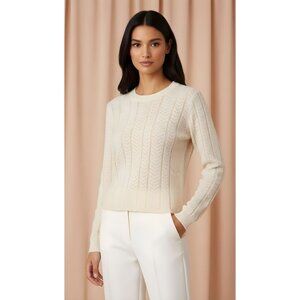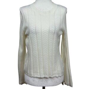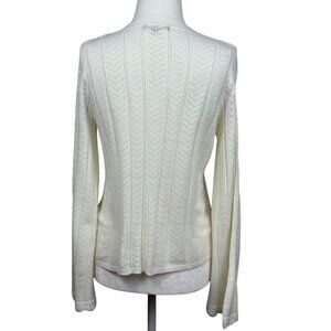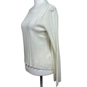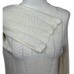 NEW Adrianna Papell Womens S White Knit Top Sweater Long Sleeve Scalloped Hem