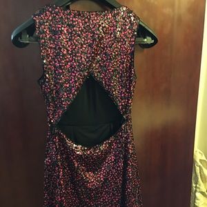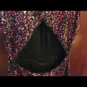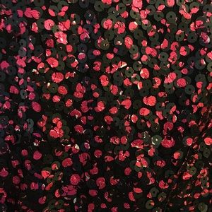 Hot pink and black sequin short dress. 12 inches from neckline to waist. 19 inches from waistline to hem of dress.