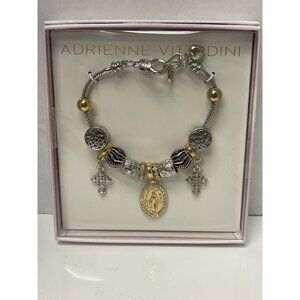 NEW! Adrienne Vittadini Gold Silver Bracelet Mary Cross Charms Women's Jewlery