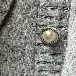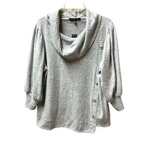 NEW Adrienne Vittadini Gray Sweater Top Pearl Accent Buttons 3/4 Sleeve -Size 2X
