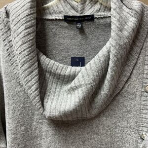 Elevate your wardrobe with this stunning Adrienne Vittadini sweater top. The gray pullover features a cowl neck neckline and 3/4 sleeves, with button accents that add a touch of elegance to the sweater. The pearl accents give it a sophisticated look that is perfect for any occasion. This sweater top is made for women, and it is available in a regular size 2X. The Adrienne Vittadini sweater top is perfect for those who want to add a touch of style to their wardrobe. Add this stunning sweater top to your collection today and elevate your style game! So soft!