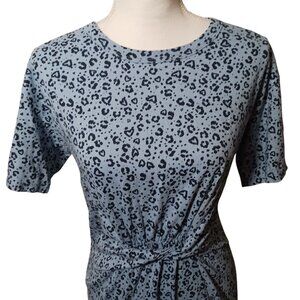 NEW Aerie Blue Heart Leopard Print T-shirt Dress Knot Front Size S