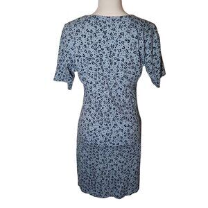 Keywords: leopard print dress, Aerie dress, women's dress, knot front dress, T-shirt dress, blue dress, casual dress, heart pattern, small dress, summer dress, short sleeve dress, made in Vietnam, cotton dress, sustainable clothing, recycled