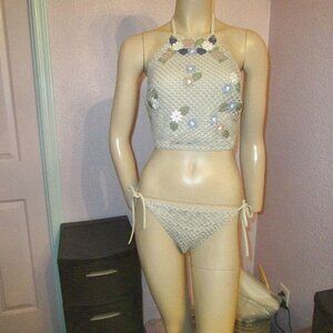 NEW Aerie EMBROIDERED Crochet Size S M BIKINI 2 Piece SWIMSUIT String HALTER Boh