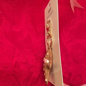 Brand new with tags. Super cute faux leather gingerbread man keychain with gold tone hardware. He has adorable red buttons and a light pink bowtie. Sold out online. Please note the little part that attaches him to the keychain has some inconsistent dye on the faux leather. It came that way. I only noticed when taking the photos and figured I’d point it out but you don’t really notice it unless you look for it!