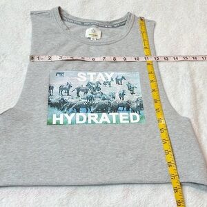 NEW Aerie Offline Cropped Muscle Tank Top Graphic Print Gray Crew Neck Small