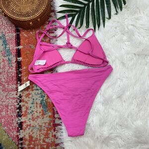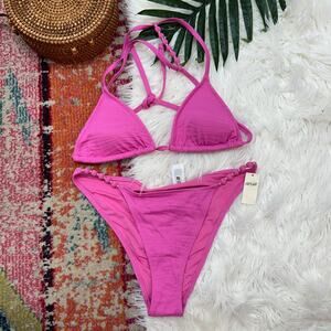 NEW Aerie Pink Padded Cheeky Triangle Matching Bikini Swimsuit Small / Medium