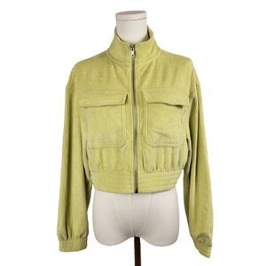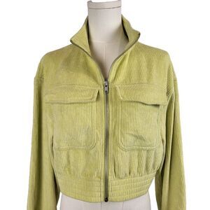 NEW Aerie X-Small Cropped Lime Green Ribbed Jacket Cotton Corduroy Zip Close