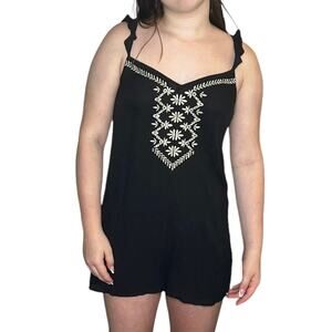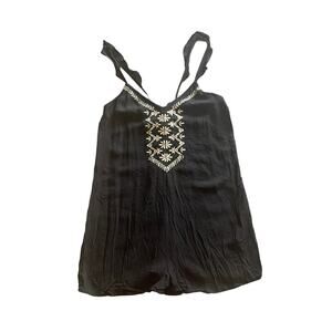 NEW Aeropostale Black Jumper Romper Shorts XS Embroidered Tie Back Jumpsuit NWT