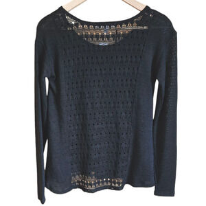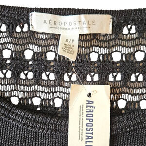 NEW! Aeropostale Women's Crochet Back Long Sleeve Shirt Black Small