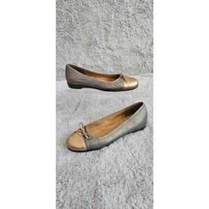 NEW Aerosoles Shoes Womens 7.5 Slip On Ballet Flats Gold Gray Leather Metallic