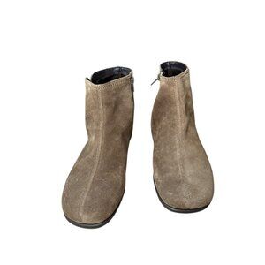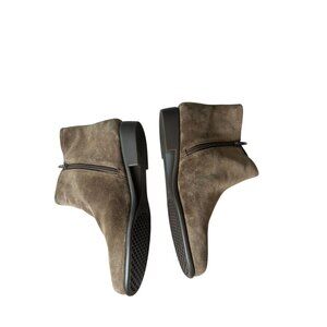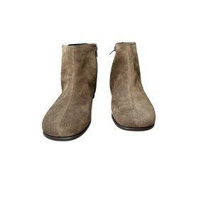 New without tags pair of women's Aerosoles Stitch N Turn brown leather booties, size 11M. Flat heel, comfortable design with size zip. Note there is a very small mark on the back bottom of one bootie, it's very hard to see but it is there if you're looking very closely at the shoe. Perfect booties for everyday wear, and they match with almost everything!