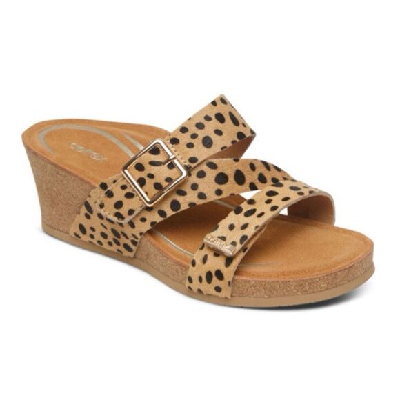 Aetrex Womens Cheetah Kimmy Cork Wedge Arch Support Sandals
