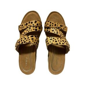 NEW Aetrex Womens Size 6 EU 36 Cheetah Kimmy Cork Wedge Arch Support Sandals