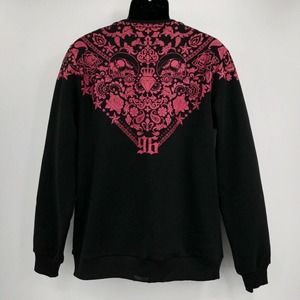 NEW AfterMath Men's Size Large Black & Red Studded Skull Paisley Sweatshirt
