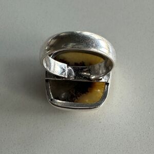 NEW Agate Square / Princess Ring 925 Silver Overlay Cream Brown Triangle Size 5