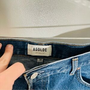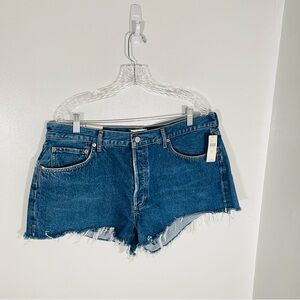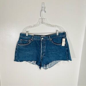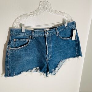 NEW Agolde Parker Short Denim Fray Vintage Cutoff Caution Blue Organic Cotton