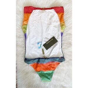 NEW Agua De Coco rainbow striped one piece swim suit bathing suit bright color