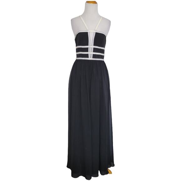 NEW Aidan Mattox Formal Gown Black Strappy Plunging Neck Full Length Women 4