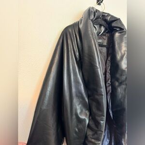 This SUPER UNIQUE piece exists somewhere between a coat, a shrug and a cardigan. Soft faux-leather material with a chunky, puffer oversized fit. New without tags! Retail $120 - offers welcome!