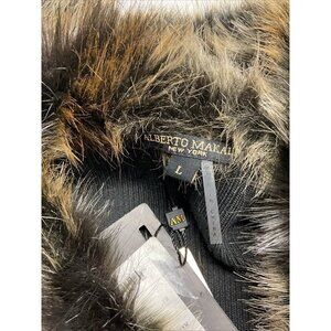 NEW Alberto Makali Black Brown striped faux fur Sleeveless Vest size LG $169
