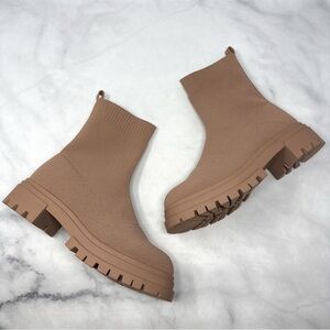 NEW Aldo Shoes North Stretch Knit Chunky Platform Ankle Boot Booties Nude Tan 10
