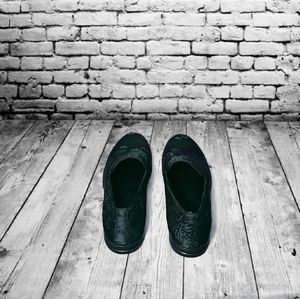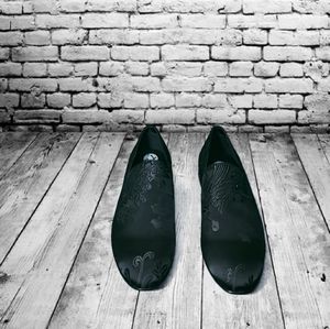 NEW Aldo Women US 7.5 Black Floral Flats Damask Fabric Velvet Casual Career Shoe