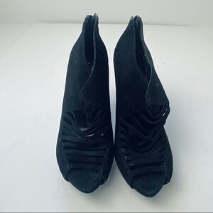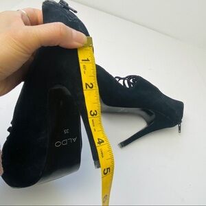 Corset style in front. Hidden platform measurements shown. Back Zipper
