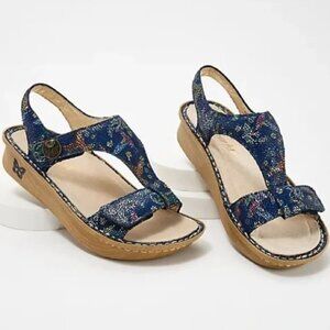 NEW Alegria Kendra Blue Birdland Mosaic Print Leather T Strap Platform Sandals