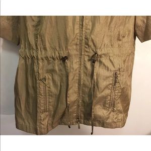 Brand new Alessa W Collection Jacket. Soft silky fabric, drawstring at waist, short sleeves, front pockets, zip front closure. Bust 49", Hips 54", Sleeves 13.5", Length 31". Smoke free home