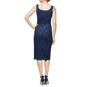 NEW Alex Evenings Sequined Lace Scalloped Hem Sheath Midi Dress in Navy 16W