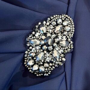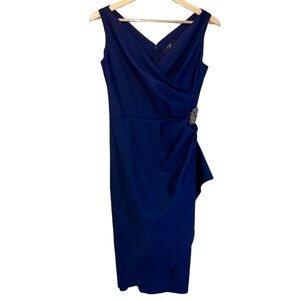 NEW Alex Evenings Side Ruched Embellished Cocktail Dress. Navy. Size 2.