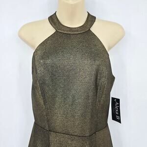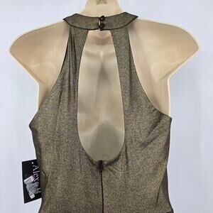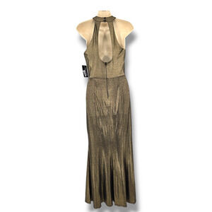 NEW Alexa B Nites Women's Gold Metallic High Neck Maxi Party Dress Size 4
