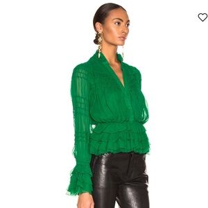 NEW Alexis 100% Silk Eleni Emerald Green Ruffled Blouse