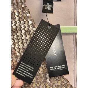 NEW Alfani Womens Allover Sequined Dress Lined Beige Size 12 3/4 Sleeve Back ZipMSRP $129