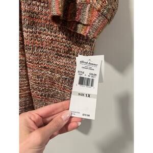 NEW Alfred Dunner Open Cardigan Knit Sweater Cotton Blend Pink Multicolor 1X JL