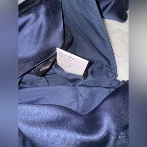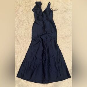 NEW Alfred Sung Bow Detail Sleeveless Satin Twill Trumpet navy blue Gown Sz 4