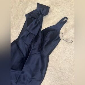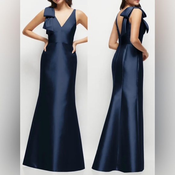 NEW Alfred Sung Bow Detail Sleeveless Satin Twill Trumpet navy blue Gown Sz 6