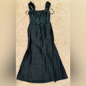 NEW Alfred Sung Bow Strap Satin Twill Trumpet Gown Sz 10 R evergreen green