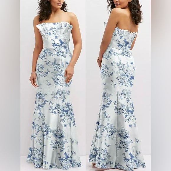 NEW Alfred Sung Floral Ruffle Strapless Trumpet Gown sz 6