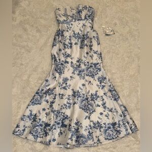 NEW Alfred Sung Floral Ruffle Strapless Trumpet Gown sz 6
