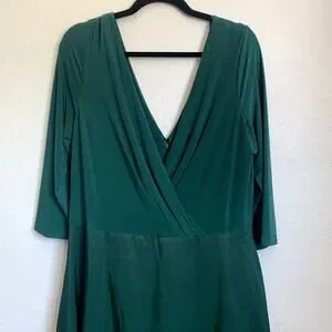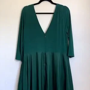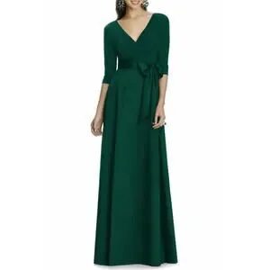 NEW Alfred Sung Jersey Mikado V Neck 3/4 Sleeve A-Line Gown in Hunter Green