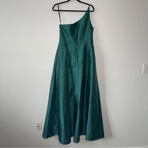 NEW Alfred Sung One-Shoulder Satin Gown Long Dress with Pockets Hunter Green 12