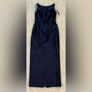NEW Alfred Sung Strapless Bow Belt Satin Twill Column midnight blue Gown Sz 10