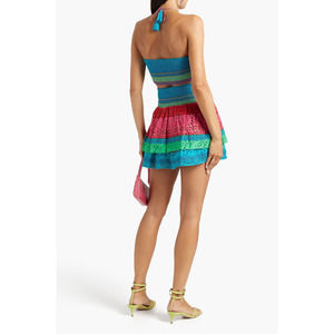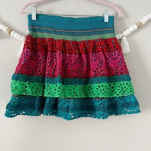 NEW Alice + Olivia Bethie Tiered Broderie Anglaise Cotton Mini Skirt Multi Sze 8