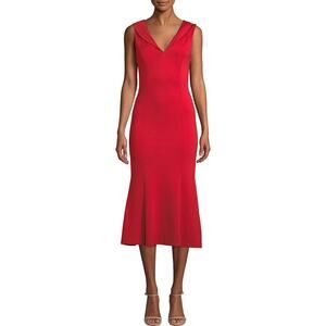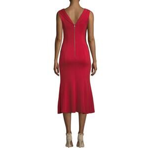 Midi Dress. Drape. Sleeveless Cocktail. Exposed Back Zipper. Mid-calf. Lined. V-neck. Gorgeous dress!