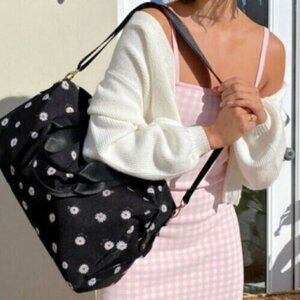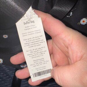 CONDITION: NWT, new with tags! Never used. Excellent condition. No flaws.MEASUREMENTS:2 exterior side pockets, 1 internal zip pocket16" W x 9.5" H x 8.25" DImportedDETAILS: Duffel bagRemovable shoulder strapZipper closureMATERIAL & COLOR: 100% polyester, Black with daisy decalsABOUT ME: New to the reselling game and ready to dive in. Always open to tips from vet resellers. Will ship the same or next day and accept reasonable offers. Thankyou for supporting my new small business! ❤THEME/ OCCASION: Business, Casual, Formal, Workwear, Travel, weekender, everyday, essential, organizing, on the go, Classic, Teacher, Designer, baby bag, maxi, structured, boarding, computer, plane, carryon, vacation, elegant, logo, statement, floral, NWT, Fabfitfun, innocence, love, new beginning, whimsical