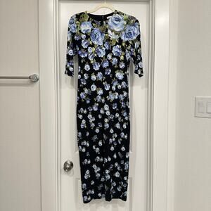 NEW Alice + Olivia Delora Floral Jersey Midi Dress in Smell the Roses Size 4