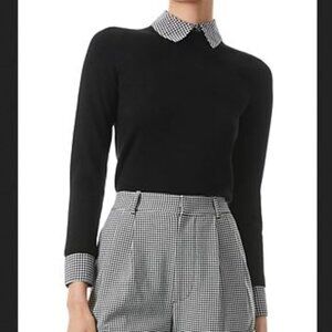 *NEW Alice + Olivia Houndstooth Cuff & Collar Black Sweater Size XS