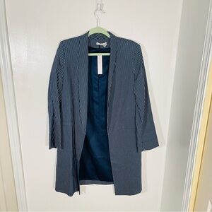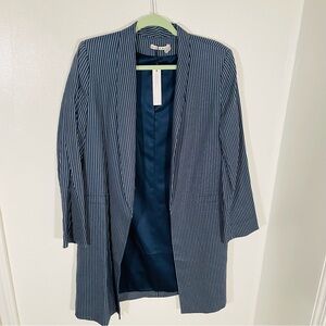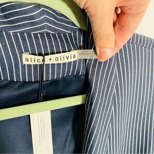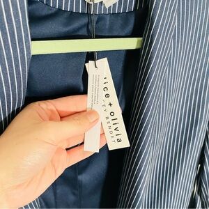 NEW Alice + Olivia Kylie Shawl Linen Blend Blazer Jacket Blue Pinstripe Academia